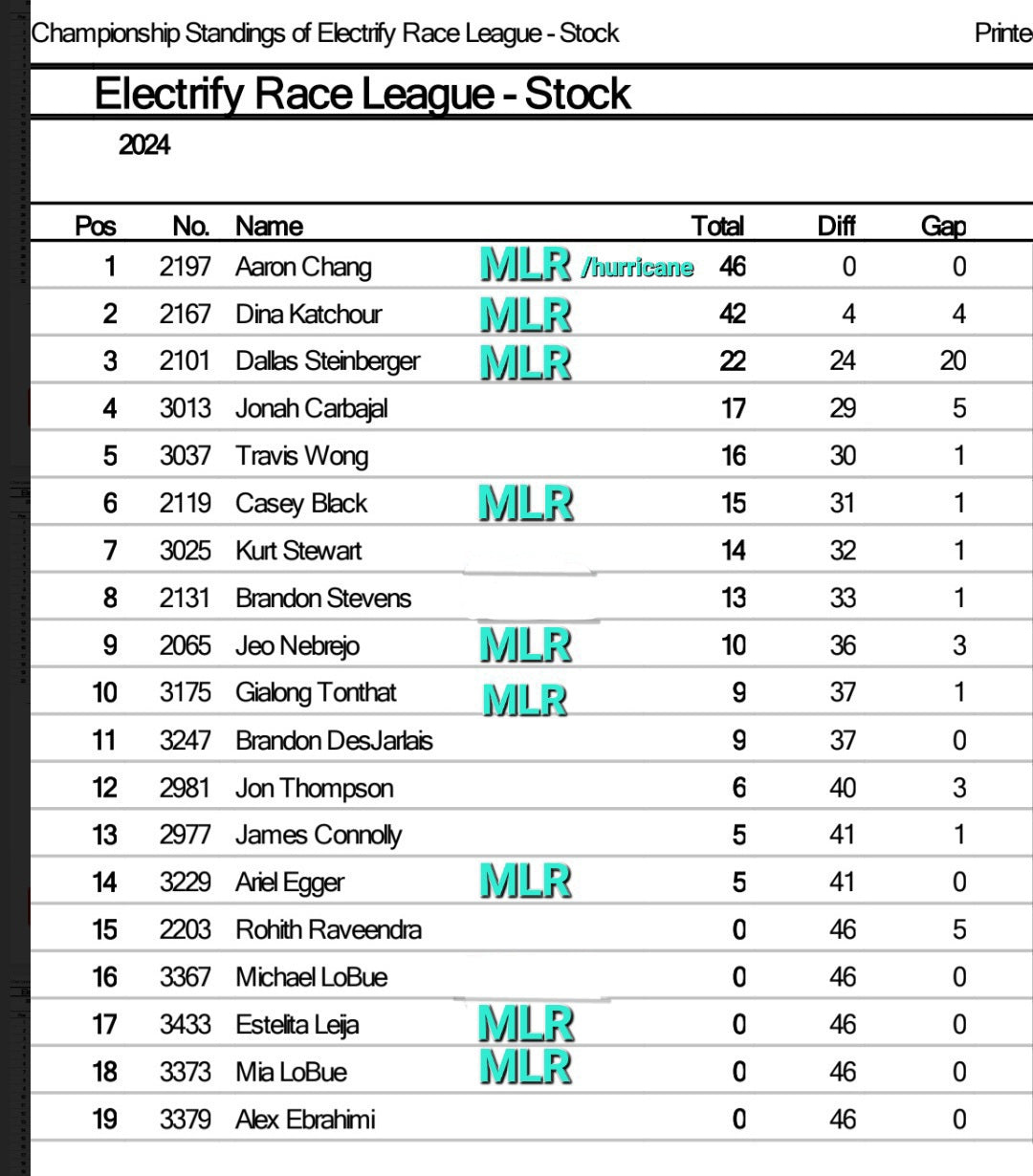 MLR BOARD AT Electrify Race League