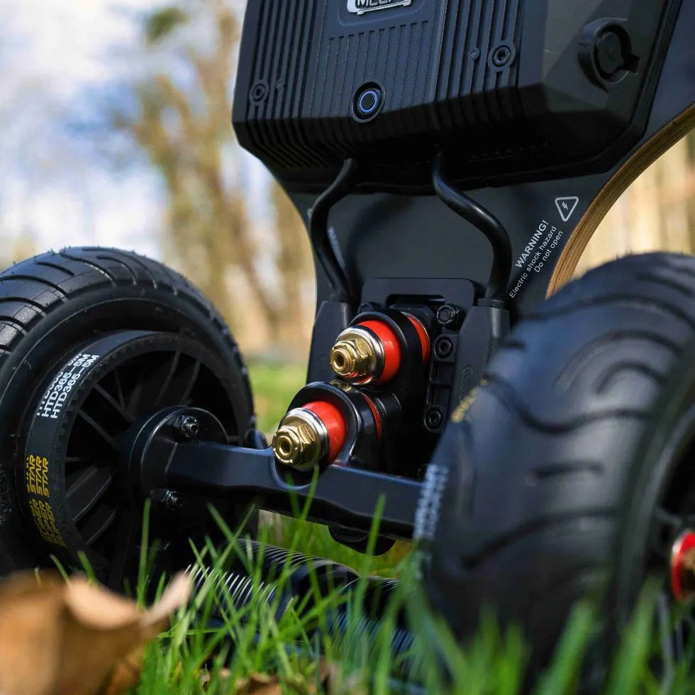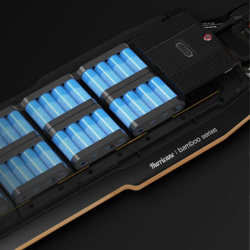 MEEPO Hurricane Ninja redefines all-terrain electric skateboarding. Boasting an segmented battery enclosure design, it guarantees utmost safety and durability for every ride. Skillfully crafted from premium bamboo, the deck leverages the natural elasticity of the material, ensuring a responsive and smooth ride, while also offering robustness and longevity. The bamboo adds a touch of elegance and natural beauty, distinguishing it from other boards. Combined with the unique battery design that minimizes risks, the Hurricane Ninja stands as a testament to MEEPO's commitment to combining technology, design, and nature. Whether you're navigating city streets or embarking on off-road adventures, this board promises unmatched performance.