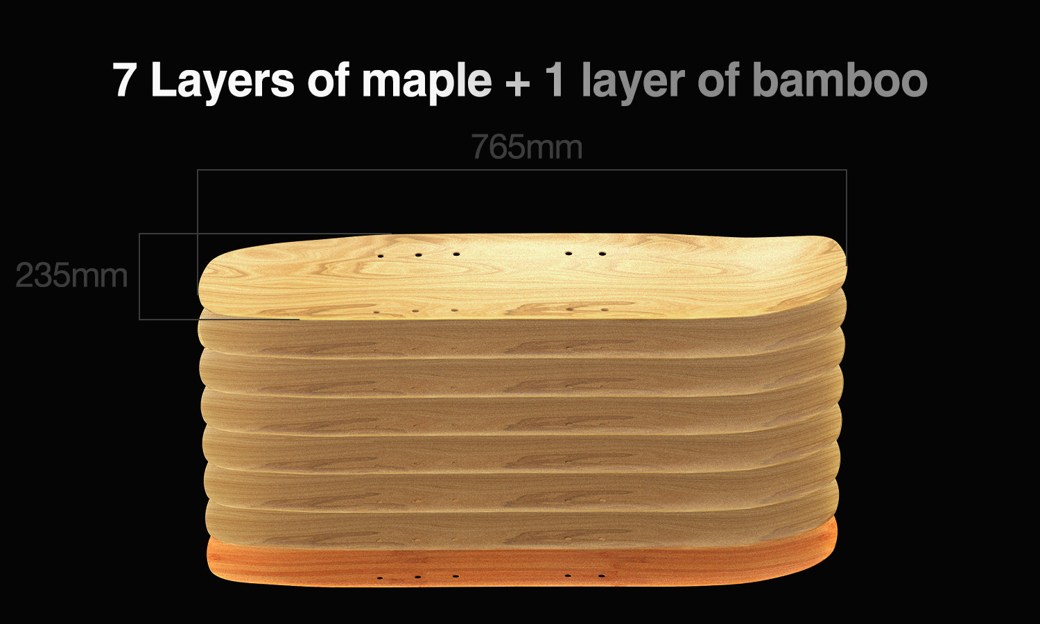 Crafted from 8-ply Canadian maple with a bamboo-style finish, the Mini 3 Max deck offers the perfect blend of stiffness and flex.
