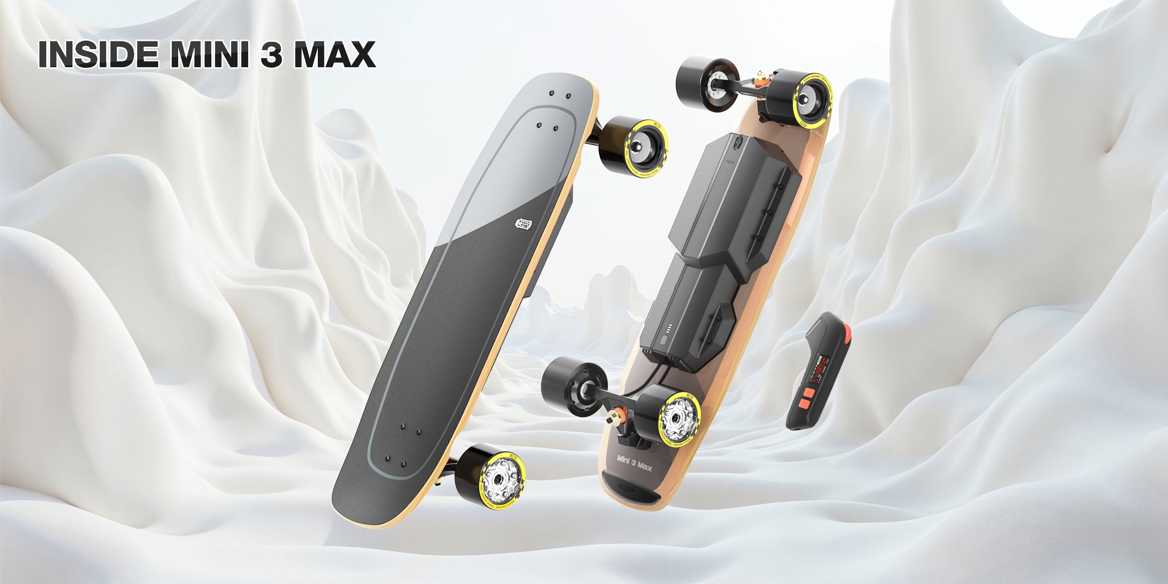 The Mini3 Max is powered by a 12S3P lithium battery pack using high-performance 18650 cells. With a capacity of 324Wh, it delivers dependable energy for up to 20 miles (32km) of riding. Whether you're commuting or carving, you’ll have the power to go further, with a smart BMS for long-term safety and stability.
