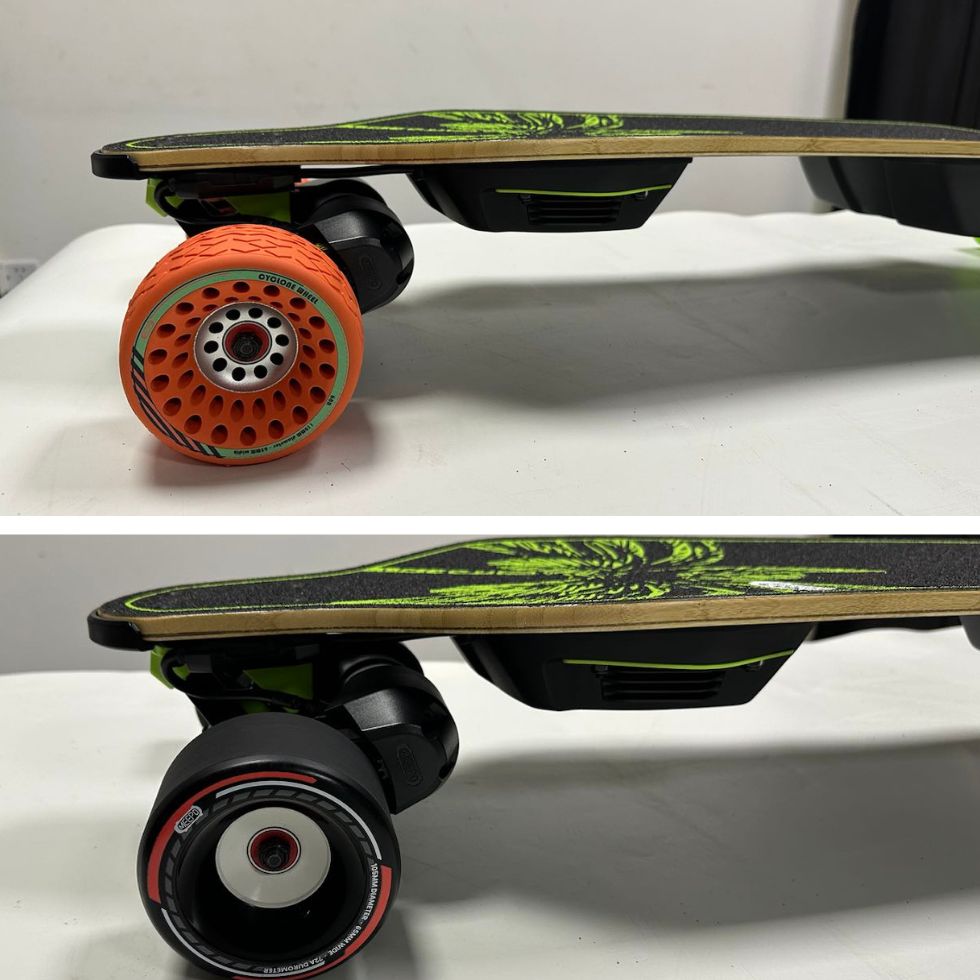 • Customization Options: New deck and grip tape design, 90mm green PU wheels, and adjustable bushings for a personalized ride.