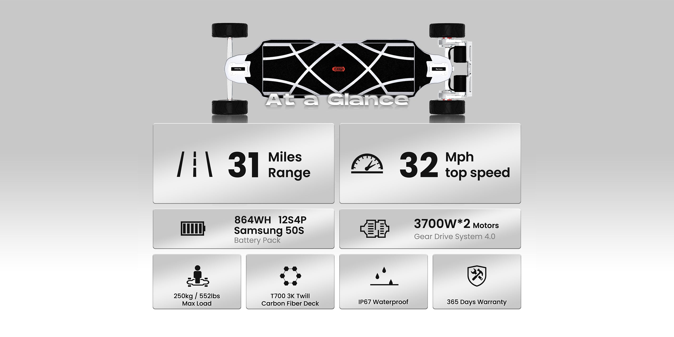 We offer 365-day warranty. It includes defects caused by the skateboard itself but excludes damage from misuse or water exposure. For details, refer to the warranty policy page.