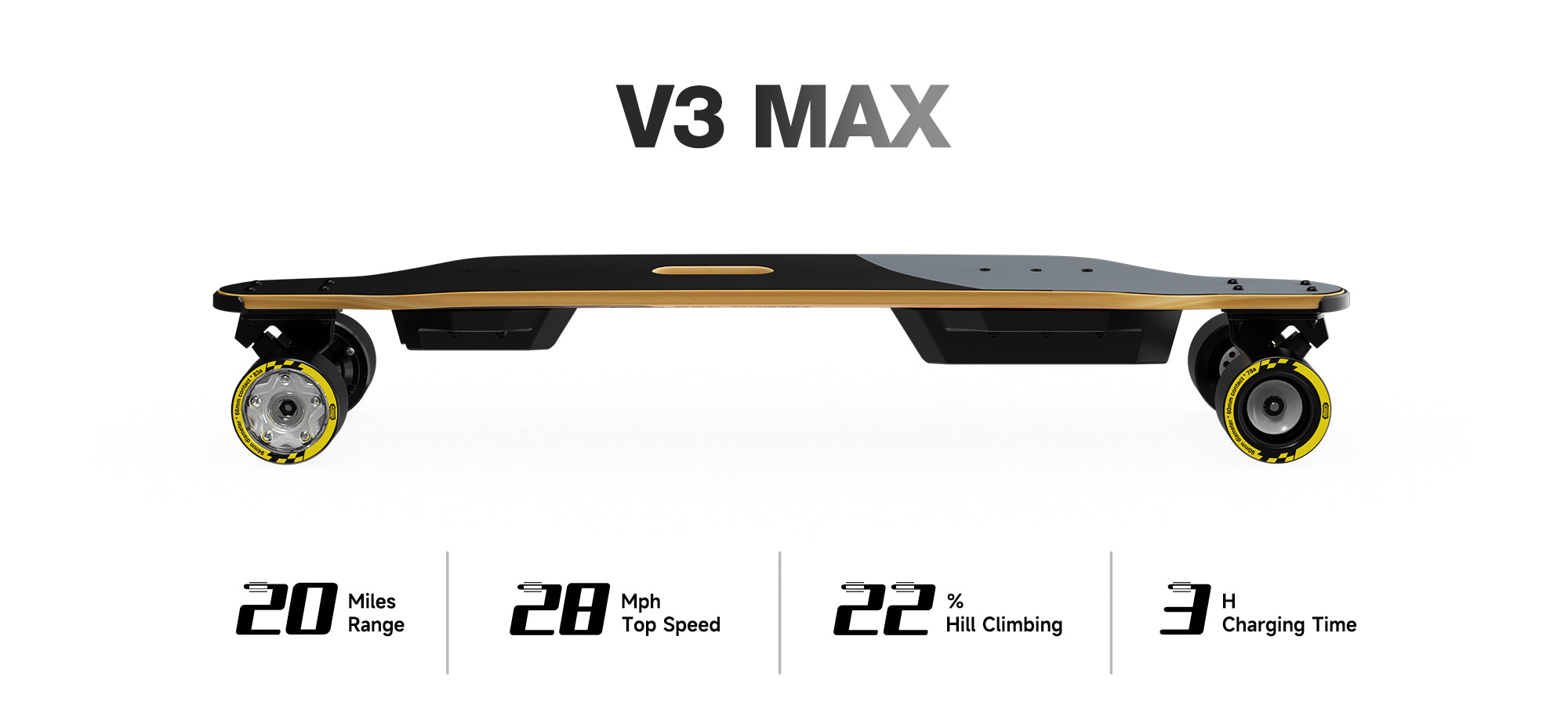 The V3 Max is powered by a 12S3P lithium battery pack using high-performance 18650 cells. With a capacity of 324Wh, it delivers dependable energy for up to 20 miles (32km) of riding. Whether you're commuting or carving, you’ll have the power to go further, with a smart BMS for long-term safety and stability.